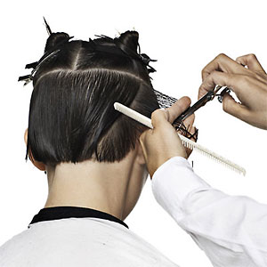 2. Klip pandehåret, som strækkes frem og klippes med spidsen af saksen.