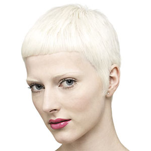 1. Alt håret afbleges og tørres med en børste. Håret klippes i tørt hår.